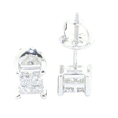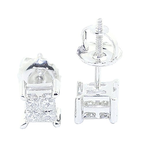 Specification: 0.25cttw Princess Cut Diamond Earrings Studs Screw Back 10K White Gold 5mm Wide (Ships Overnight!)