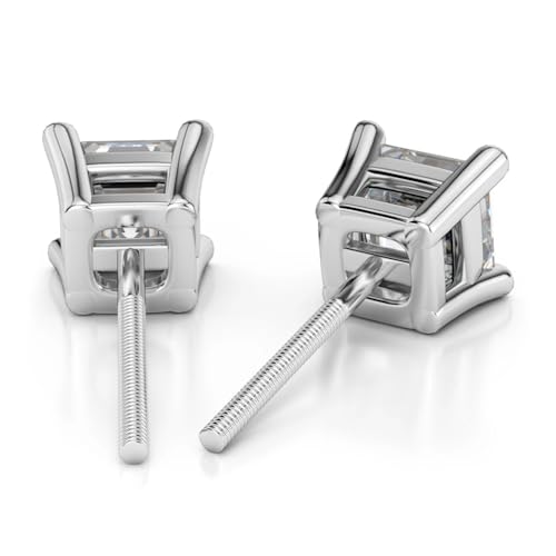 Specification: 1.00 Ct Princess Cut Diamond Screw Back Women’s Stud Earrings 14k White Gold Finish With 925 Sterling Silver