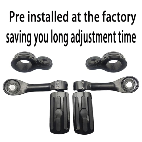 Specification: 1.25″ Adjustable Motorcycle Foot Pegs, Long Angled Adjustable Highway Pegs for Harley Davidson Touring Honda Kawasaki Suzuki Yamaha Indian Victoryw/1-1/4″ Engine Guards Black