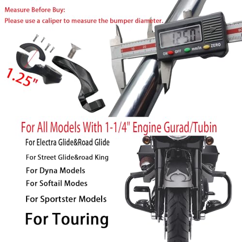 UNIVERSAL COMPATIBILITY: Fits 1.25″ engine guards for Harley Davidson, Yamaha, Indian, Victory, Honda, Kawasaki, and Suzuki motorcycles with mounting hardware included.