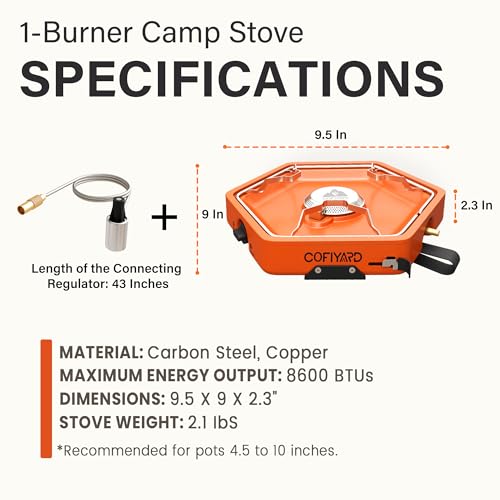 In The Package: Includes 1 x COFIYARD Camping Gas Stove, 1 x COFIYARD Gas Stove Regulator, 1 x User Manual. 1-Year and 24/ 7 Customer Support