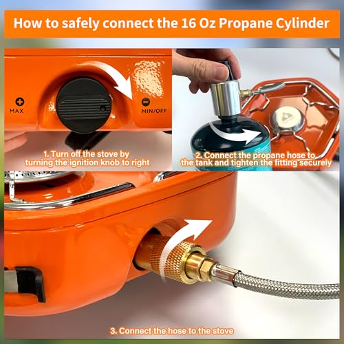 Premium Hose with Regulator Connection: Equipped with a high-quality propane hose and regulator, this stove is designed for maximum safety. The locking valve prevents leaks when the stove is not connected, and the regulator protects against overheating propane tanks