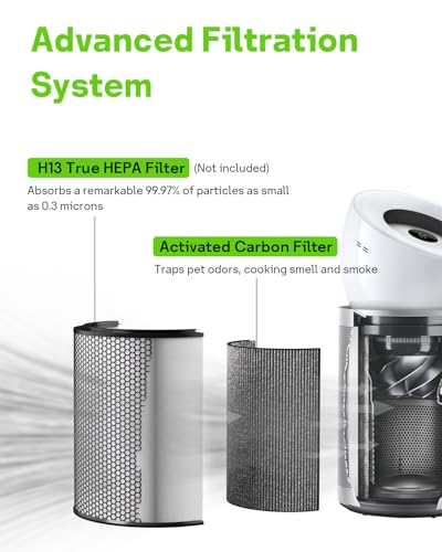 【Ture Filtration System】True filter attaching 99.97% of particles as small as 0.3 microns, and cleans pet dander, pollen, and dust. The activated carbon filter efficiently absorbs household odors from smoking, pets, and cooking fumes