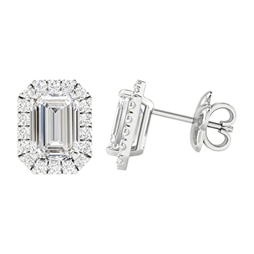 Specification: 1 to 6 Carat IGI CERTIFIED LAB GROWN Emerald Halo Diamond Earrings 14K Gold Value Collection Push Back Push Back (I-J Color SI1-SI2 Clarity)