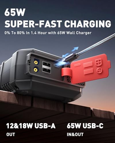 【PD65W Fast Charging Power Bank + 160W EC5 Output】Equipped with a massive 26,800mAh capacity, this device offers blazing-fast charging speeds. Featuring PD 65W USB-C bi-directional charging, it recharges from 0–100% in just 1.5 hours, or provides a 5-minute quick charge to get you going. Additional Dual USB-A (12W + 18W) outputs let you charge multiple devices simultaneously. The 160W EC5 output powers 12V in-car appliances such as tyre inflators, mini fridges, and car vacuums. (Note: 65W wall charger not included)