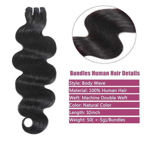 Specification: 10 Inch Body Wave Bundles 100% Unprocessed Brazilian Virgin Human Hair (4 Pack, 4x50g) Natural Color Quick Weave Hair Extensions
