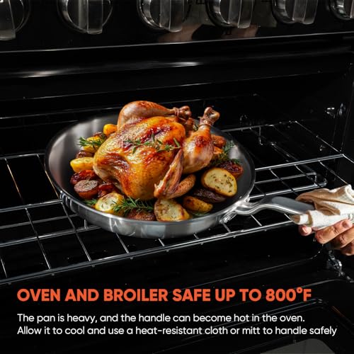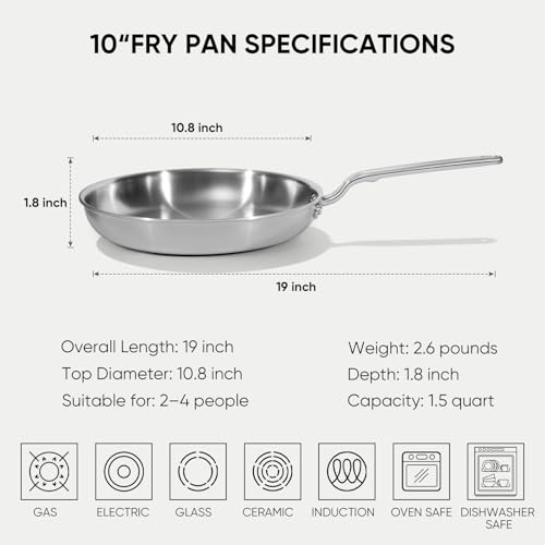 Specification: 10 Inch Stainless Steel Frying Pan – 5 Ply Stainless Clad Skillet with Aluminum Core, Durable and Even Heating, Professional Cookware for Induction, All Stoves, Oven and Dishwasher Safe