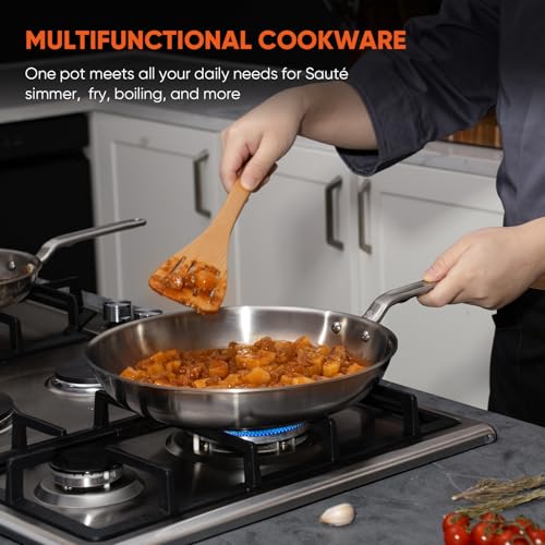 10 Inch Stainless Steel Frying Pan – 5 Ply Stainless Clad Skillet with Aluminum Core, Durable and Even Heating, Professional Cookware for Induction, All Stoves, Oven and Dishwasher Safe