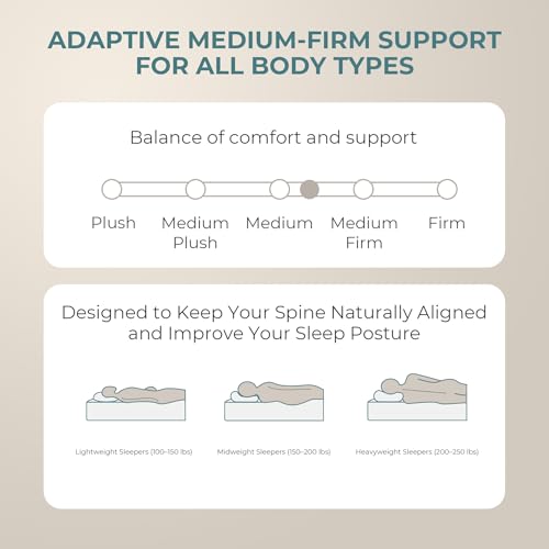 [MULTI-SIZE FIT FOR EVERY LIFESTYLE] – Mattresses for sleeping are available in different sizes to meet diverse sleep needs and room styles. Twin and Full sizes are ideal for kids, teens, singles, or students seeking compact comfort and proper spinal support. Queen suits couples or expectant mothers who need balanced comfort and motion isolation. King offers roomy, family-friendly space for parents, pets, or heavier sleepers.Perfect for apartments, homes, guest rooms, or master suites.
