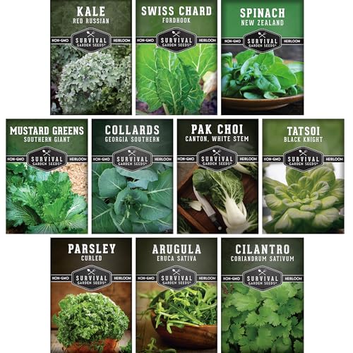 10 Power Greens Seed Collection – Heirloom Collards, Mustard, Swiss Chard, Spinach, Kale, Tatsoi, Pak Choi & More for Fall & Spring Planting | Survival Garden Seeds