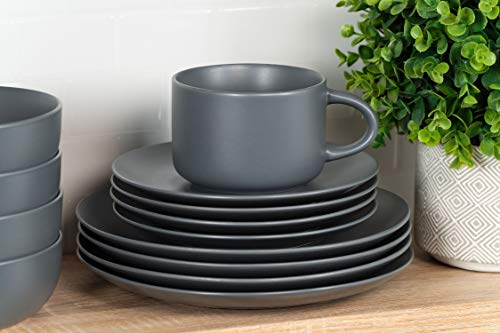 Specification: 10 Strawberry Street Wazee Matte Coupe Dinnerware Set, 16 pc, Charcoal Gray
