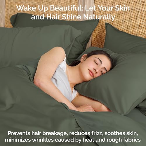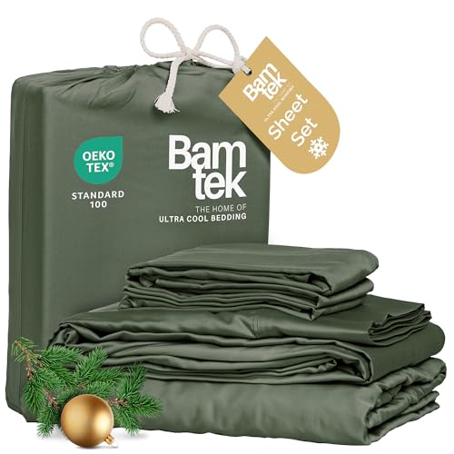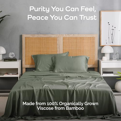 100% Viscose from Bamboo Sheets Queen Size, Super Soft Bedding Set, 4PC Cooling Sheets for Hot Sleepers, Vegan Silk Moisture Wicking, Organically Grown Bedsheet, Moss – 60″ x 80″
