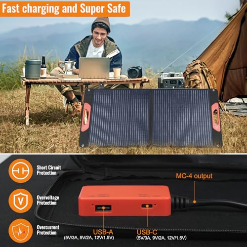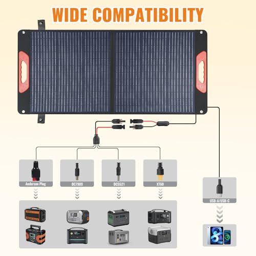 Specification: 100W Foldable Solar Panel – Charger for Power Stations | Monocrystalline 23.5% High Efficiency QC3.0 USB-A/USB-C Output | IP65 Waterproof | Portable for Camping, RV, Emergency Blackout