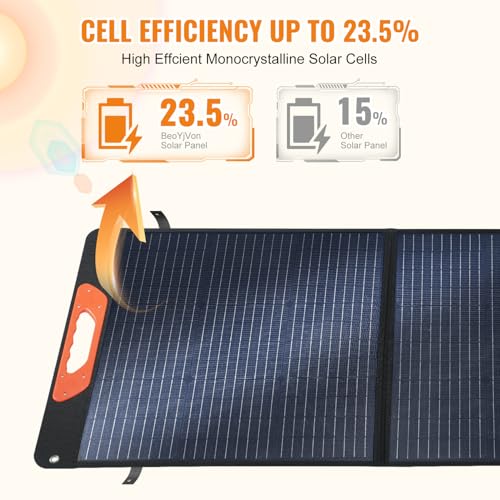 【Versatile Output and Wide Compatibility】:The BeoYjVon 100W foldable solar panel meet all your charging needs .The solar interface can seamlessly connect to our complimentary 4-in-1 solar cable (XT60/ANDERSON/DC5521/DC7909), we also provide a set of 11-in-1 DC adapters, ensuring compatibility with the majority of outdoor power station available in the market;1*USB-A & 1*Type-C can charge USB devices like phones, tablets,laptops etc