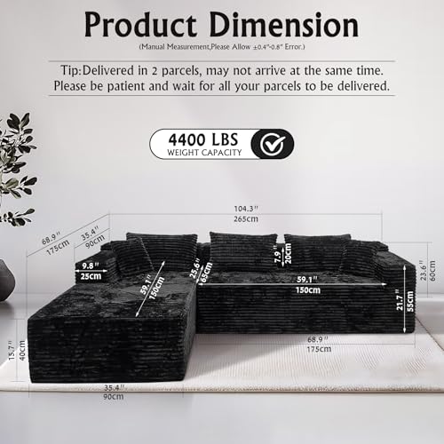 Specification: 104″ Cloud Sectional Couch with L-Shape Chaise, Modern Modular Sofa, Deep Seat Comfort, No Assembly Required(Plush Corduroy Fabric)