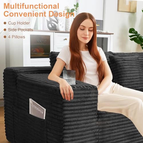 Durable Craftsmanship: Made with premium corduroy fabric & sturdy internal framing, these black couches for living room ensure long-lasting use. 30D high-rebound sponge outperforms pocket springs, maintaining shape for years—ideal for a durable sofa set for living room.