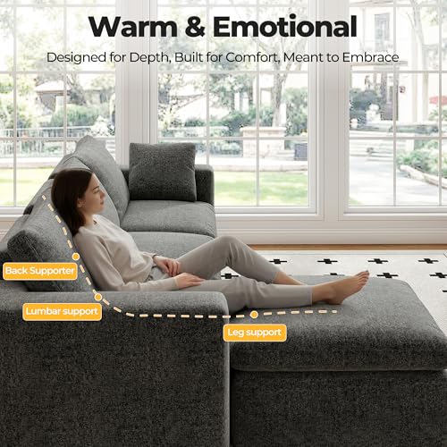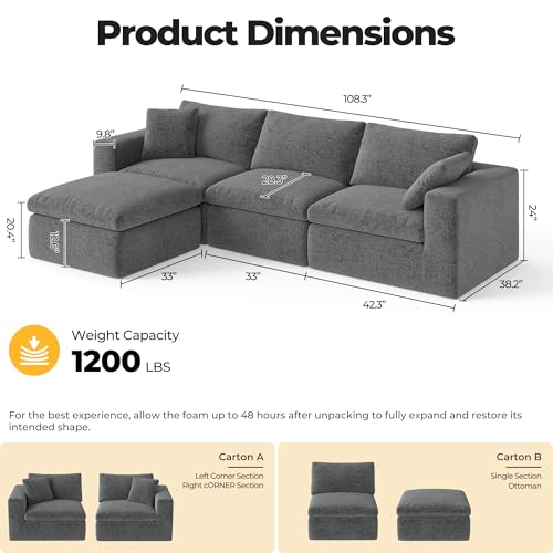 Specification: 108.3″ Cloud Sectional Couches for Living Room, L-Shape Couch with Ottoman, 3 Seater Modular Sectional Sofa with Deep Seats for Bedroom Office