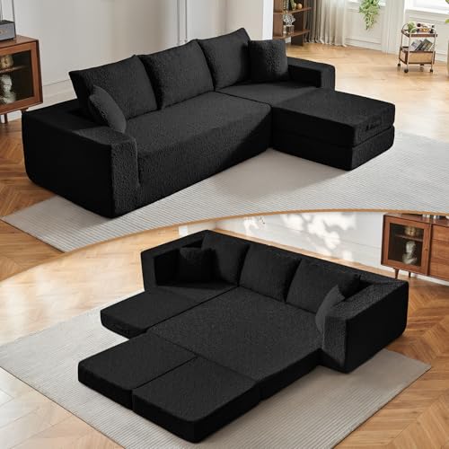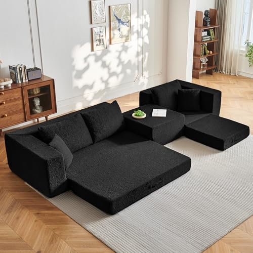 Specification: 108″ Modular Sectional Cloud Sofa – Boneless Couch with Deep Seat, Non Slip Base, Sleeper Sofa Sectional Couches for Living Room, Cozy Modular Couch with L-Shape Chaise, No Assembly Required, Black