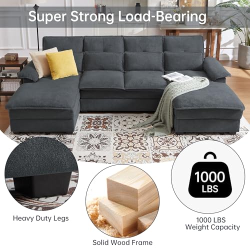 Specification: 110″ Comfy Cloud Couch Sectional Sofa with Lumbar Pillows, Modern U-Shaped Cloud Sofa with Double Chaise & Deep Seat for Living Room, or Office, Easy Assembly, Dark Grey