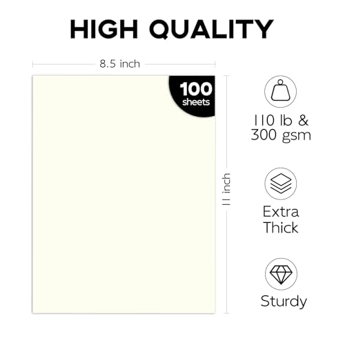 Heavy Cardstock: The premium 110 lb (300 gsm) card stock, featuring a smooth matte finish and a 14 pt (0.35 mm) thickness; Each package includes 100 sheets of double-sided ivory cardstock, perfectly sized at 8.5 x 11 inches; The entire cardstock is made of FSC-certified paper