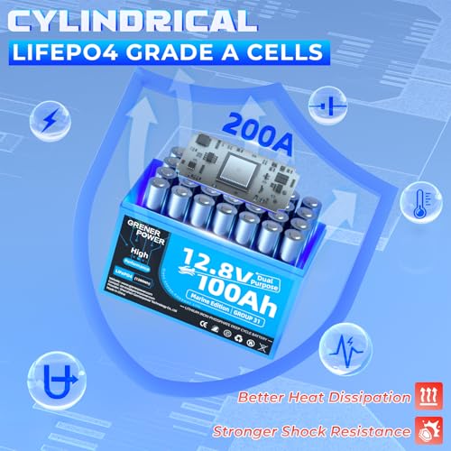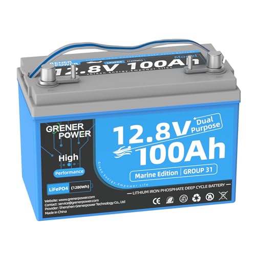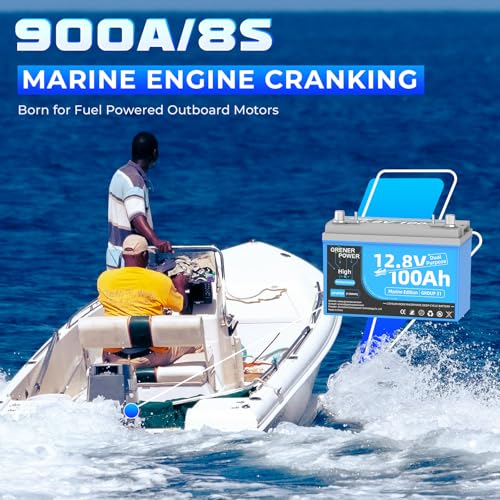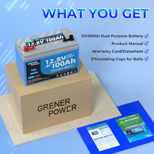 ✅Market First, Uniquely Dual-Powered✅ Meet the game-changer for your marine adventures – the GrenerPower 12.8V100Ah dual purpose lifepo4 battery! Designed specifically as a lithium cranking battery, it delivers 900A MCA (Marine Cranking Amps) to ignite even the toughest outboard motors instantly. It is a Group 31 battery (13.0×8.35×6.62in) with dual-terminal design, this marine starting battery powers both your motor and onboard devices like fish finders. No more swapping batteries – enjoy all-day cruising and backup power in one rugged Lifepo4 battery that outperforms lead-acid by 40% lighter weight.