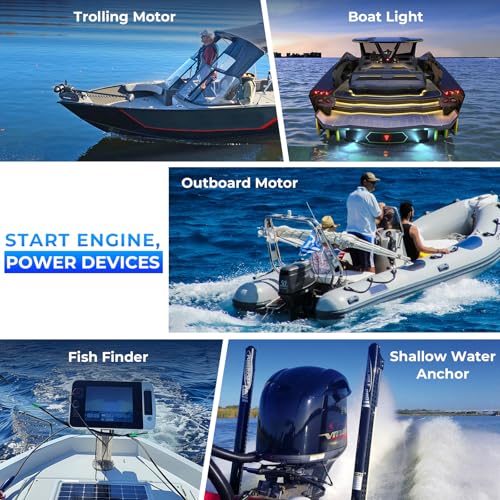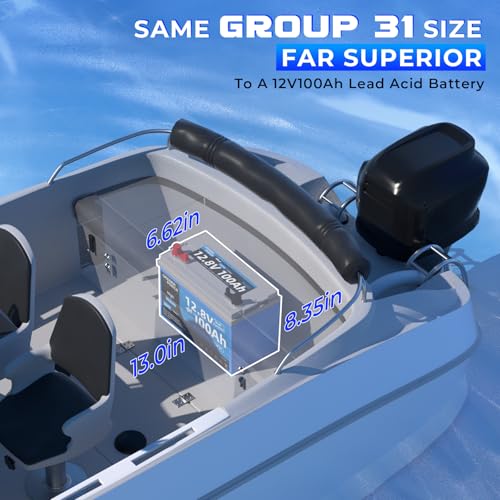 ✅Dual-Terminal Game-Changer✅ One battery, two purposes! This 12V100Ah dual purpose lithium battery combines marine starting battery strength with deep-cycle battery endurance. Its IP66 waterproof rating and Group 31 battery case fit standard battery boxes, while dual terminals let you crank your outboard motor and then run 12V loads (lights, GPS, pumps) . It weighs 25.35lbs, at 40% lighter than 12V100Ah lead-acid yet packing double the energy, it’s the ultimate MCA starting battery for longer, faster voyages.