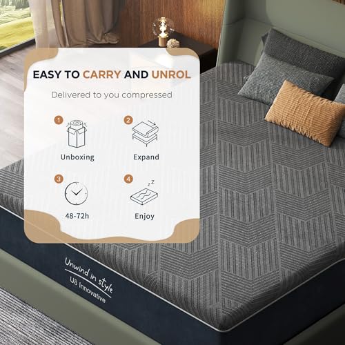 Easy Setup and Maintenance: Delivered compressed for easy transportation and setup. Simply unbox, expand, and enjoy your new mattress within 48-72 hours. The non-slip bottom cover ensures stability on any bed frame.
