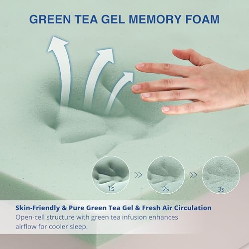 Cool Feeling: The infused green tea gel absorbs moisture and heat, promoting deeper and more restful sleep. The egg crate design excels in great breathability and enhances air circulation for a cooler sleep environment, ideal for hot sleepers.