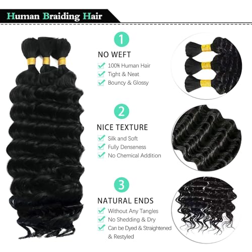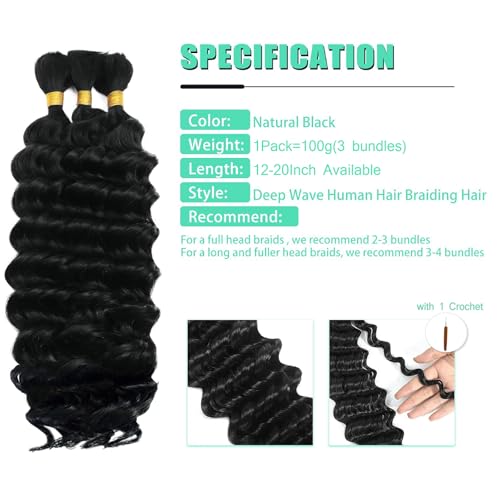Specification: 12 Inch Human Braiding Hair for Boho Braids 100g Deep Wave Curly Boho Hair for Braiding Knotless 3 Bundles/Pack Natural Black