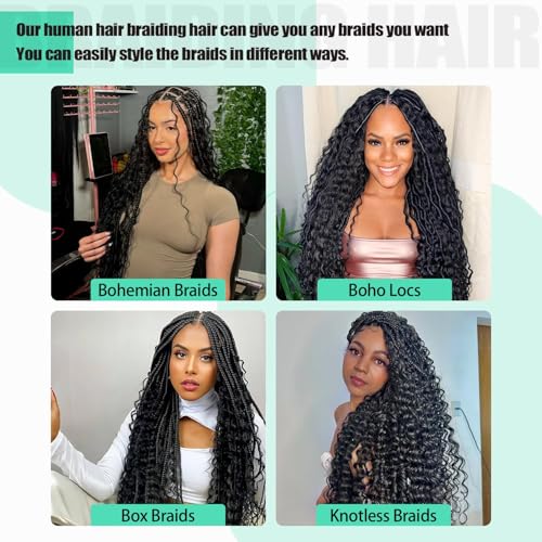 【Versatile Styling】: Embrace your creativity and express your unique style with our human braiding hair; Human hair for boho knotless braids, bohemian crochet braids, boho Locs and goddess box braids with endless possibilities and stunning looks