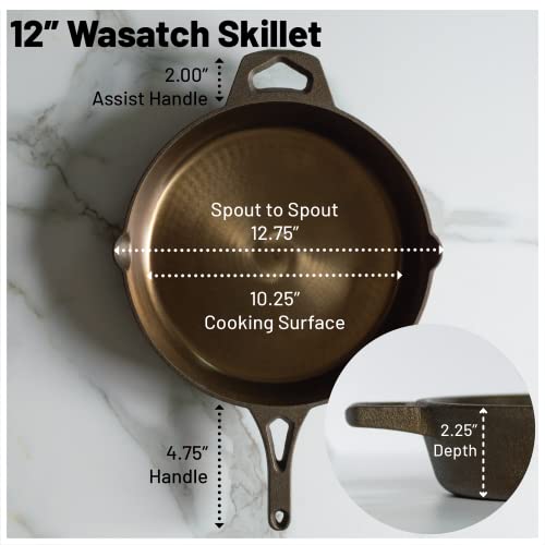 12 Inch Smooth Wasatch Pre-Seasoned Round Cast Iron Skillet