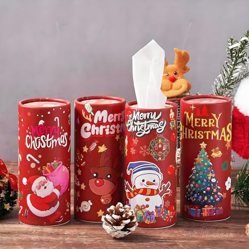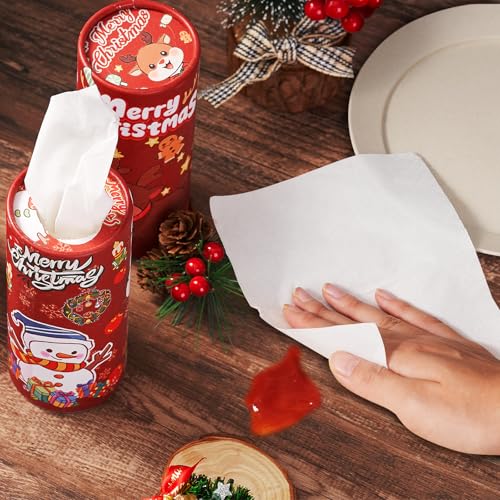 Versatile Use: Christmas tissues round tube boxes are perfect for outdoor gatherings, family dinners, and trips. They also work great in everyday spots like the bathroom, living room, kitchen, toilet, and car. Plus, Christmas tissue cylinders can double as surprise Christmas gifts for friends and family or as Christmas decorations, bringing the full Christmas experience.