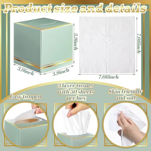 Suitable Size: these facial tissues cases offer just the right size for convenience; The compact box, measuring 3.94 x 3.94 x 3.94 inches, fits snugly on any desk, counter, or car; Tissue paper unfolded measures approximately 7.1 x 7.1 inches / 18 x 18 cm