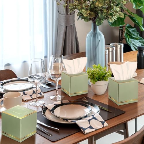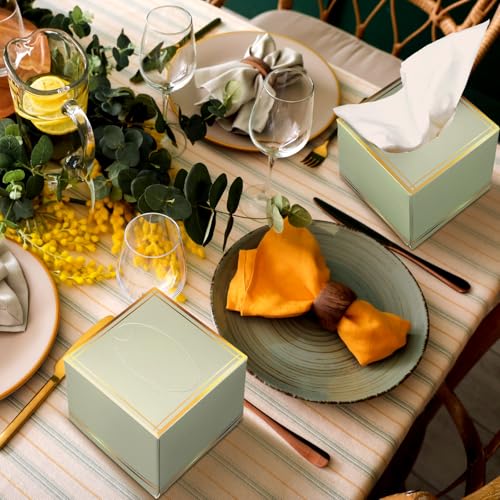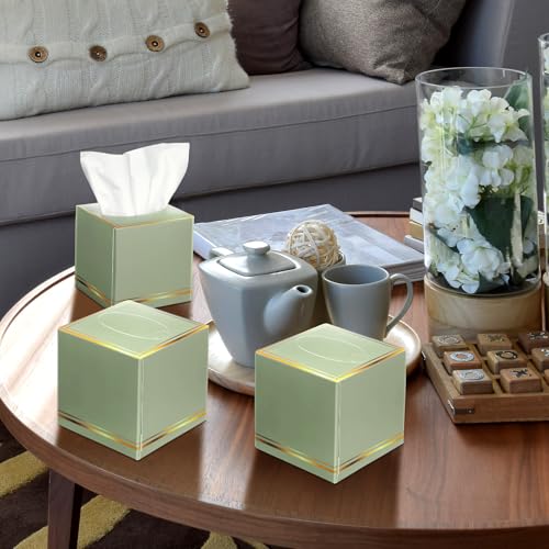 Pattern Design: our cube paper boxes are green sage color and gold embellishments around, carefully designed to attract attention and add beauty to your home; You can place them on the dining table, bedroom, and living room to add a touch of elegance
