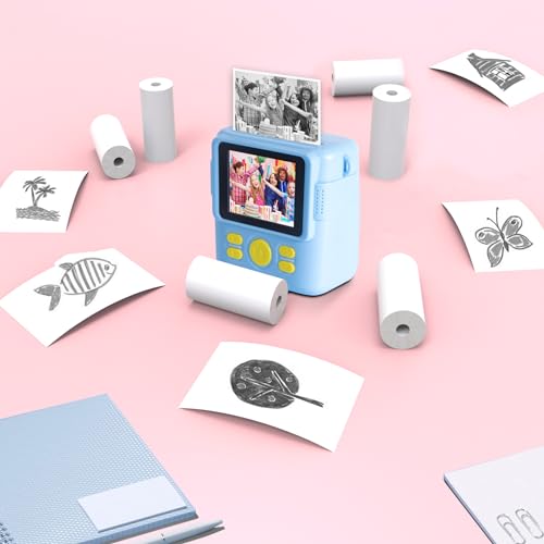 [12 Rolls Print Paper]: Include 12 rolls instant camera refill print paper.Each roll of paper is about 2.2 in × 20 ft and can print about 75-90 photos.Enough quantity for kids to replace and use for a long time