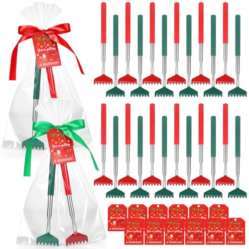 12 Set Christmas Back Scratcher for Women Men 24 Pcs Back Scratcher Extendable with Gift Cards Bags Ribbons Stocking Stuffers for Men, Women, Teen Boys Gifts(7-Teeth)