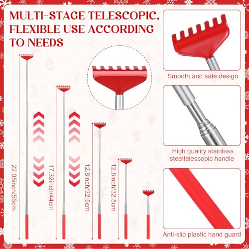 Retractable Range: the stainless steel Christmas back scratcher adopts a retractable design, with a length of 7.9 inch before extension and can be extended to a maximum of 22.4 inch, which can easily reach hard-to-scratch areas such as the back and shoulders, instantly relieving itching; It can be applied as a creative Christmas gift for adults or teenagers, suitable for family members of different ages