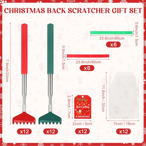 Specification: 12 Set Christmas Back Scratcher for Women Men 24 Pcs Back Scratcher Extendable with Gift Cards Bags Ribbons Stocking Stuffers for Men, Women, Teen Boys Gifts(7-Teeth)