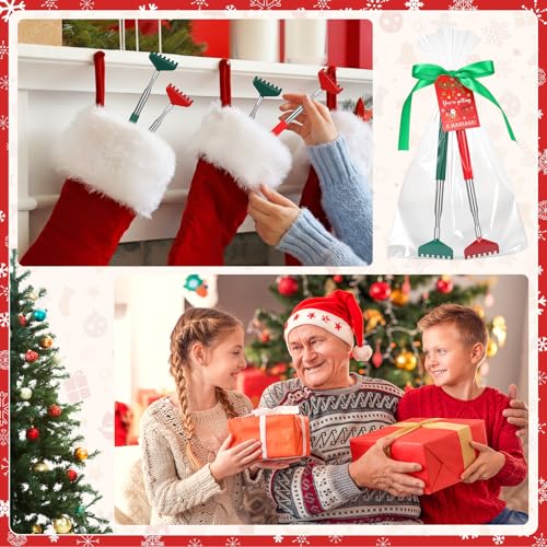 Christmas Scratcher Gift Set: you will receive 24 pcs 7-teeth back scratcher (12 each in red and green), 12 Christmas cards, 12 red and green ribbons, and 12 clear OPP bags; The red and green color scheme complements the Christmas theme and can be made into 12 christmas gifts for family or friends