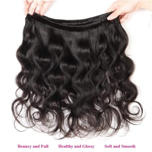 12A Body Wave Bundles Human Hair 20 22 24 Inch 100% Unprocessed Virgin Brazilian Body Wave 3 Bundles Human Hair Weave Natural Black for Women Full And Thick