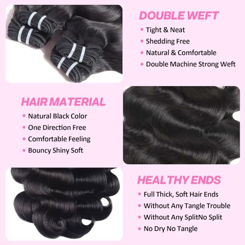 Human hair bundles advantage: Tight and neat weft with high elasticity. bouncy and glossy, This body wave bundles human hair hick and healthy end. one direction cuticle with no split ends, minimal shedding, tangle free, no chemical treatment, no smelling, no animal hair mixed, no Lice