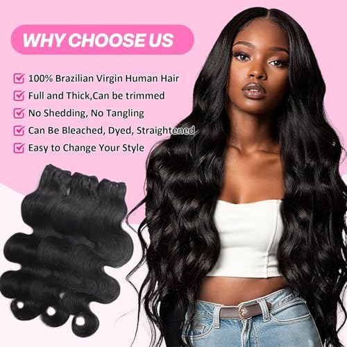 Specification: 12A Human Hair Bundles 18 20 22 24 Inch Body Wave Human Hair Bundles 100% Unprocessed Brazilian Virgin Hair 4 Bundles Human Hair Natural Colour Extensions Quick Weave
