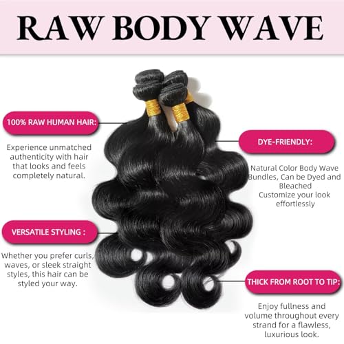 Body Wave Human Hair Bundles Material: 100% Unprocesssed Raw Virgin Brazilian Bundles Human Hair, 12A Human Hair Bundles, Body Wave Bundles Human Hair 3 Bundles Human Hair, Cut From Young Girls Directly without Any Chemical Processe. Bouncy, Healthy, Clean Soft and Stay Beautiful Longer. Offering You a Full and Silky Look