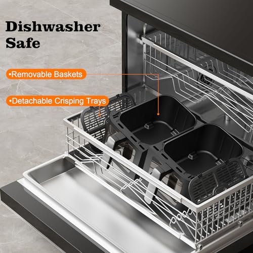 【NON-STICK & DISHWASHER SAFE】: The non-stick coating on the baskets ensures food doesn’t stick, making cleanup a breeze. Both baskets and trays are dishwasher safe, saving you time and effort after cooking