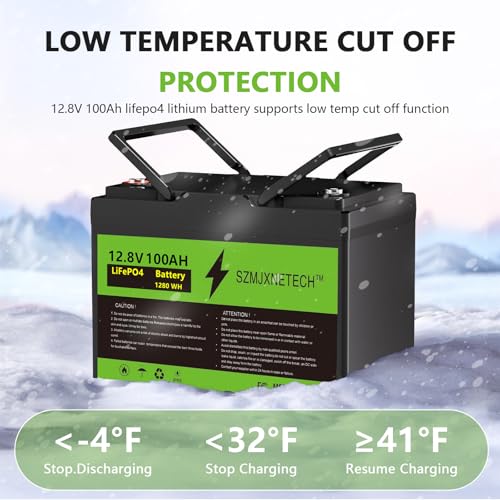 Low temperature cut-off protection function: The SZMJXNETECH 12V 100Ah lithium iron phosphate battery has a low temperature cut-off feature. When the temperature drops below 0°C, charging will be cut off; when it exceeds 5°C, charging will resume; and when it is lower than -20°C, discharging will be cut off. The intelligent battery management system can prevent the battery from experiencing overcharging, overdischarging, overcurrent, and short circuits, and the upgraded low-temperature cut-off function ensures safe use in both low-temperature and any other conditions.