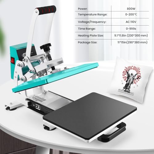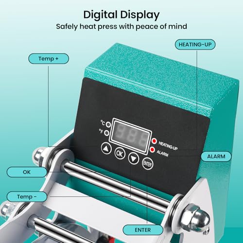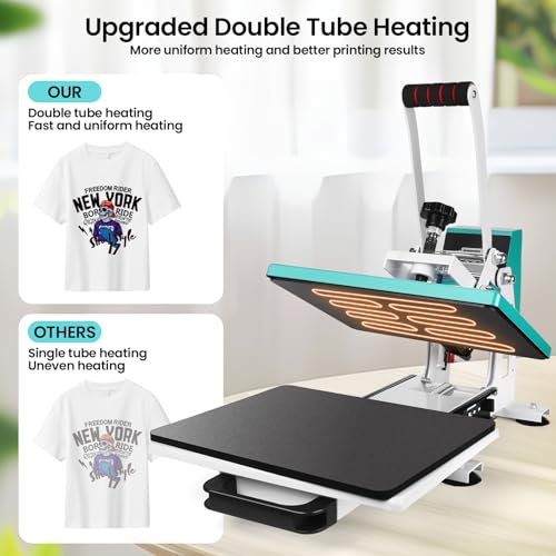 Easy to Use: Heating Up Quickly & Evenly This heat press machine for t shirts combined thermistor technology and a dual-tube heating engine, it can heat up quickly in a short time, save your 30% waiting time. And precise control of the temperature at each position of the heating plate is the same, distributes heat evenly, there is enough heating capability for almost any projects. With our tshirt press machine both crafter or beginners can complete professional heat transfer projects!