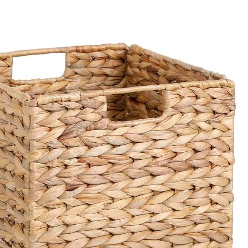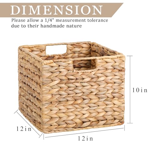 Specification: 12X12X10in Water Hyacinth Storage Baskets, Wicker Storage Cubes Set of 3, Kitchen Baskets for Pantry Organization, Foldable Square Baskets for Shelves