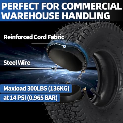 MAX LOAD 300LBS: Both the inner tube and outer tire are thickened. The outer tire has a reinforced cord fabric and steel wire built in for heavy-duty usage. MAX LOAD 300 LBS (136 KG) at 14 P.S.I (0.965 bar).