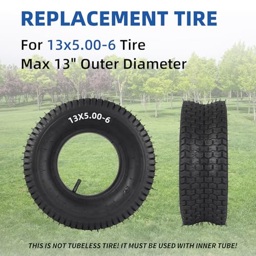 Specification: 13×5.00-6 Tire and Inner Tube Set, TR-13 Straight Valve Stem, Replacement Riding Mower Front Wheel Assembly, 2 Pack