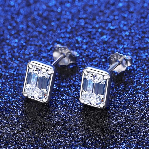 Specification: 14K Gold 1.2ct Diamond Square Stud Earrings for Women, VVS1 D-Color Emerald Cut, Great Gift for Girlfriend